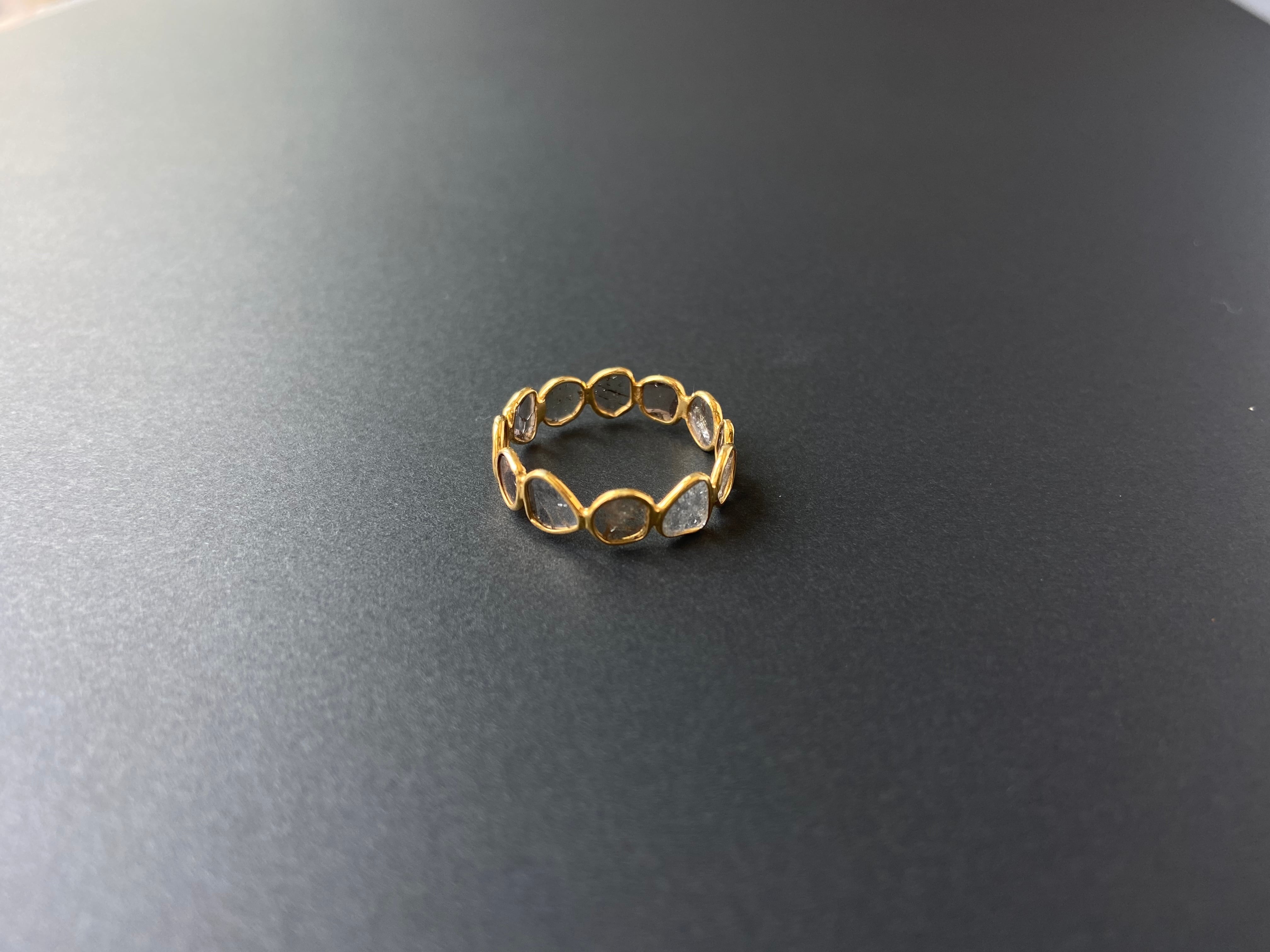 ひとつひとつ表情の異なるスライスダイヤモンドをぐるりと一周配したフルエタニティリング。