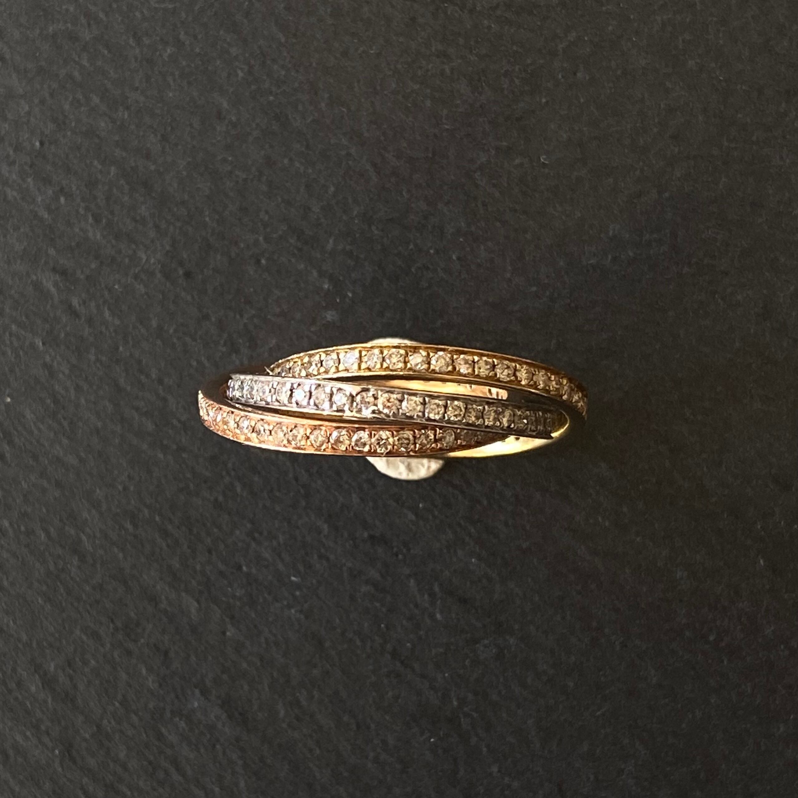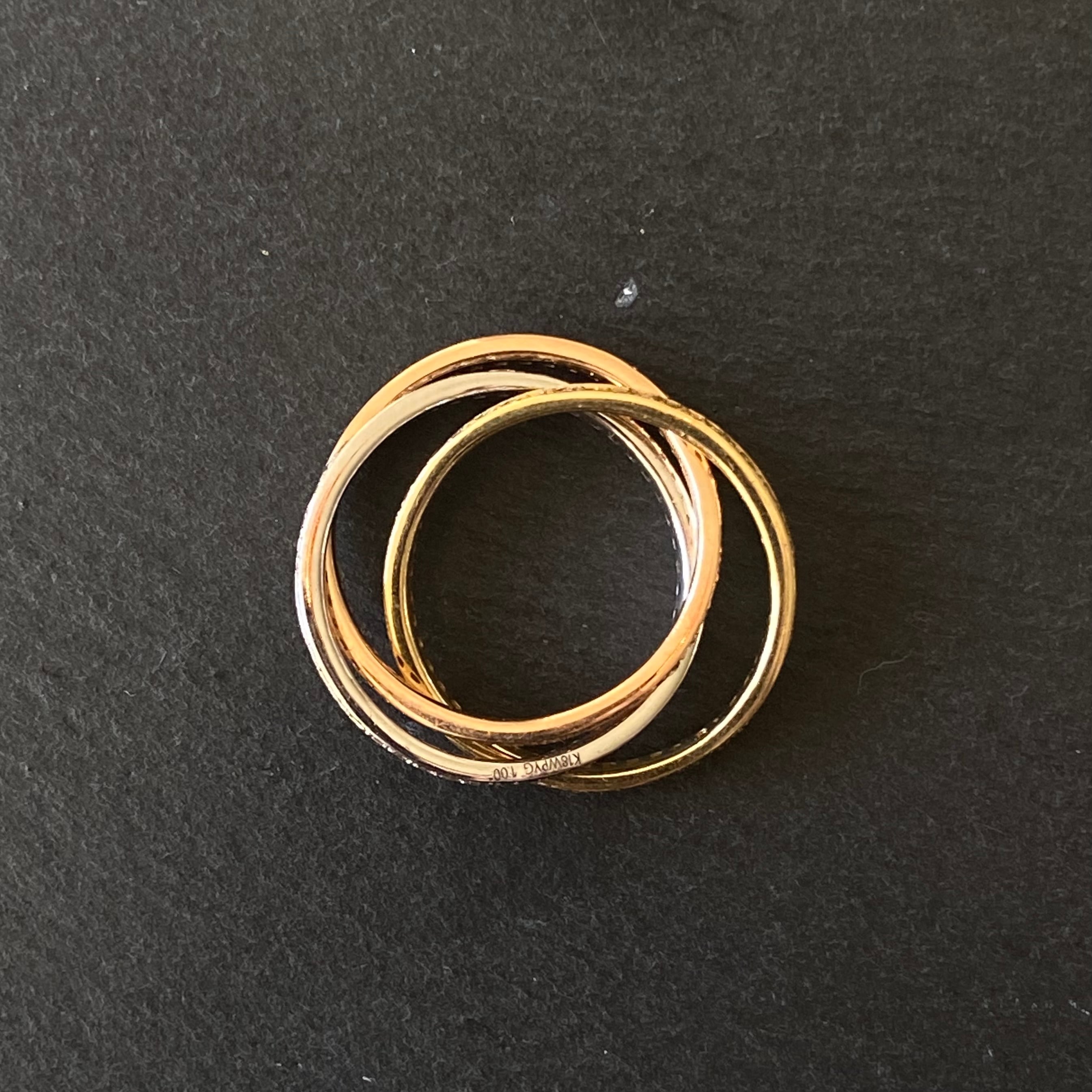 イエローゴールド、ホワイトゴールド、ピンクゴールドの素材を組み合わせたトリニティデザインの程よい立体感と動きが魅力です。